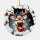 Cute smiling reindeer breaking through ceramic ornament