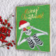 Cute Smiling Skeleton Ornaments Santa Hat Green Holiday Card