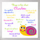 Personalize and customize our adorable "cute snail" poster with all of the things that you love about that special child (or children) in your life. It's a great, personal, and unique gift for birthdays, Christmas, other special occasions, or just because. Children will beam with pride and love when you give this to them for any reason or 'just because'. I've been giving posters and cards like this to my children for years, and no toy or expensive gift could mean more!!!