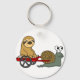 Cute Snail Pulling Sloth in Red Wagon Keychain