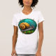 The material is a great quality that is hard to find with most tee shirts. Fabric was not see-through or thin at all, but was also very soft and comfortable. The shirt description states that it runs a little small, so I sized up one size for a perfect fit! I would definitely buy this type of tee shirt again because I love the fit and high quality fabric that I cannot find anywhere else. The printing was perfect and just as pictured. Loved the cute quote and really enjoy the tee in both the quality and design. I love quirky typography designs and funny quotes and I am extremely pleased with the overall quality and value I get at Zazzle!