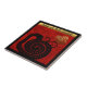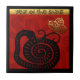 In a square are one black Snake paper-cut, placed in the center looking at a golden ornament inside of which is the second snake with ideogram. Behind the scene there is a red background on which decorative and ornate letters form the words: SNAKE YEAR. Design on square ceramic tile on black background. Matching greeting card, holiday postcard, party supplies and more... Perfect for Chinese New Year of the Snake 2025 or birthday (people born in Snake Year). --------- "The snake (蛇) is the sixth of the twelve-year cycle of animals which appear in the Chinese zodiac related to the Chinese calendar.
