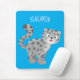 Cute snow leopard cartoon illustration mouse pad