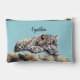 Cute Snow Leopard Cub And Light Blue Sky Monogram Accessory Pouch