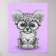 Cute Snow Leopard Cub Wearing Glasses on Purple Poster