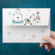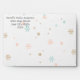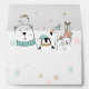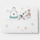 Pastel snowflakes in coral rose, tan and teal cover this pre addressed envelope (or remove the address and name to leave it blank) - on the back flap and inside is a collection of adorable holiday animals - polar bear, bird, penguin flamingo and beaver wearing winter hats and scarves.