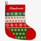 Surprise a special someone with your nice gifts stuffed into this a personalized Christmas stocking printed with cute snowflakes in red, white, and green.