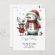 Cute snowman wearing a Santa hat and a reindeer in a plaid jacket on a postcard. Text can be changed. AI assisted graphic purchased with commercial use. Artwork: RedHeronLighthouse