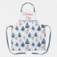 A cute Snowman and snowy trees Christmas apron with snowmen wearing red Santa hats and fir trees covered in snow with a snowy white background. A lovely festive design for the holiday season.
