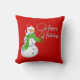 A cute holiday snowman on a bright red background is sure to make your days festive. Great decor for your living room or bedroom. Happy Holidays text. Available on a square throw pillow and a lumbar pillow.