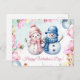 A simple happy Valentine's day card with a cute snowman couple (a girl and a boy) surrounded by watercolor pink flowers. Winter theme. Edit using the Design Tool to move/resize the elements in this design and make it your own.
