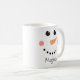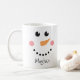 It's a minimalist, geometric design with a clean white background. In the foreground a kawaii (cute) snowman face with rosy cheeks, a carrot nose, and coals for a mouth. Personalize it with your name (or the name of the person to whom you're going to gift it).