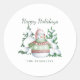 Cute Snowman Happy Holidays Family Name Classic Round Sticker