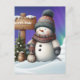 Cute snowman on North Pole with northern lights. This design is perfect for winter lovers, holiday enthusiasts, and anyone looking to add a dash of cozy charm to their wardrobe or decor. This artwork brings the beauty of the Arctic straight to you,