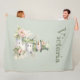 Soft green background with cute watercolor snowman with pastel green scarf & hat. Pretty coordinating flowers & faux snow create a sweet design on this adorable blanket. A perfect holiday gift.