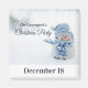 A Christmas party save the date magnet with a cute photograph of a little snowman. Standing outside in the winter with snow falling all around. This cute little guy is dressed up in blue knitted hat and scarf.
