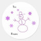 Add a sweet and simple touch to your holiday gifts with these adorable snowman round sticker gift tags. Featuring a charming hand-drawn snowman with delicate snowflakes and easy “To” and “From” fields, these stickers make gift wrapping quick, festive, and fun.