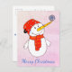 Cute Snowman with a Snowflake Pink Merry Christmas Holiday Postcard