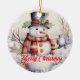 Cute snowman with bird in the snow ceramic ornament