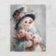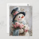 Cute Snowman with Pink Roses Postcard