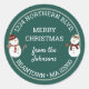 Cute Snowmen in Plaid Scarves on Teal Classic Round Sticker