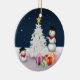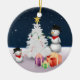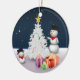 Cute Snowmen with Christmas Tree Ceramic Ornament