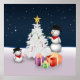 Winterly and festive graphic illustration featuring two cute snowmen decorating the Christmas tree with candy canes, christmas lights and a star tree topper.