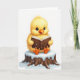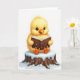 This card shows a soft, light-filled scene with a fluffy chick-like bird centered on a bright white background, its sunny yellow feathers giving the moment a gentle, friendly warmth 🌷. The little creature has large deep-blue eyes that meet yours with an affectionate, curious look, like it’s sharing a quiet secret with a close friend. It sits on a rustic tree stump dusted with white snow, keeping its small orange webbed feet tucked in close for comfort. Nestled in its wings is an open, rich brown book with thin gold bands on the cover, held carefully as if it’s reading to someone it trusts 🐰. Tiny white specks, like fresh snow, scatter across the stump and lightly dot the book, adding a dreamy winter sparkle. A short greeting appears near the top in a soft pastel tone, with a smaller line of text centered near the bottom in light gray. The book’s crisp white pages are slightly parted, and the stump’s snowy edges catch the light in delicate, bright highlights.