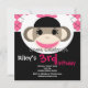 Cute Sock Monkey Birthday Invitations Pink Argyle