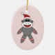 Cute Sock Monkey Wearing Santa Hat Christmas Ceramic Ornament