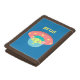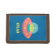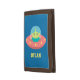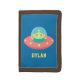 Go an outer space adventure with this wallet that has a cute and happy green alien with a heart shaped antennae which means it comes in peace and is out to make friends. It is travelling in a tiny spaceship across the galaxy. Great for kids who love space themes, rockets and UFOs. Personalise with child's name.