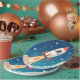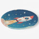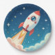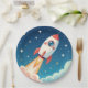 Cute space rocket blasting off paper plates