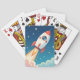 Cute space rocket blasting off poker cards