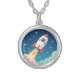 Cute space rocket blasting off silver plated necklace