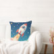 Cute space rocket blasting off throw pillow