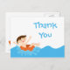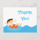 This boys thank you post card has a cute pool theme. There is a boy jumping into the pool water making a big splash. You can easily customize your thank you message on the backside. Artwork created by Babystar Design Cute splash girl's pool party birthday invitation