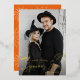 Celebrate being in your spooky era with this adorable gold foil Halloween photo card. The design features the phrase “We’re in our spooky era” in a trendy gold foil script overlay, surrounded by playful spiders, a spider web, and a bat. Personalize with your favorite vertical photo and your name for a unique Halloween greeting. The card reverses to an orange and white spider web pattern, making it a stylish keepsake for sharing seasonal memories.