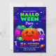 Get ready to host a spooktacular party with this fun and vibrant digital Halloween invitation! This eye-catching design features a grinning jack-o'-lantern, a bubbling witch's cauldron, and a spooky skull—all surrounded by candy and bones. It's the perfect way to invite friends and family to your Halloween party.