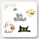 Protect your surfaces in spooky style with this adorably festive Halloween plastic coaster! Featuring a charming design of a cute black cat staring at a glowing full moon, playful bats flying across the night sky, and cheerful graphics of a smiling cute ghost, and spider, this coaster is perfect for adding a touch of Halloween magic to your home or office. Durable, lightweight, and easy to clean, it’s ideal for holding your favorite drinks while keeping your surfaces safe. Add a whimsical Halloween vibe to every sip!