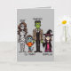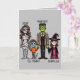 This cute cartoon illustration features a mother mummy, daddy Frankenstein, werewolf little boy, and witch little girl, making it the perfect cute and unique addition to your Halloween greetings. Perfect for celebrating Halloween with the whole family.