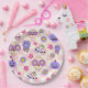A cute Spooky Vibes Groovy Ghost Halloween paper plates, with a pink and purple vibe. It's a spooky and exciting theme that's perfect for kids. Our cute Halloween paper plate sets the tone for a memorable and eerie adventure. The legendary Ghosts have been spotted, and they're calling all spooky friends to materialize for a ghoulishly good time!