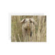 This cute postcard features a beautiful photograph of a cute pink spotty pig emerging from some tall grass.