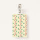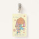 A cute hall pass badge with a spring theme for elementary school teacher featuring a bunny , a pile of books and some little flowers on the front and a carrot and floral pattern on the back . Personalize if with the educator's name .