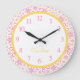 Cute Spring Floral Yellow & Pink Wall Clock for baby girl's nursery or kid room. Custom name. Whimsical pink floral pattern & yellow border. Ideal for baby girl's nursery. Yellow + pink create a very cheerful, festive look.