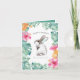 This cute Easter card features a replica of my original hand painted watercolor illustration of a bunny rabbit encircled by hibiscus flowers and botanical greenery in shades of greens, pinks and orange on a crisp white background. The words "Happy Easter" are set in a modern brush script typography. Personalize with you own greeting. The inside features a complimentary turquoise green color with your custom greeting in white. Assorted Easter cards available in my online store. Personalize the words to read Happy Birthday with your names or whatever you like. Select multiple quantities to order your spring Easter cards in bulk and save. To see more Easter cards 2022 by Victoria Grigaliunas visit www.zazzle.com/dotellabelle