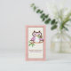 Cute spring owl on a branch, orange plaid border business card