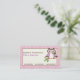 Cute spring owl on a branch, pink plaid border business card