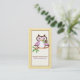 Cute spring owl on a branch with yellow plaid border business cards, featuring a cute spring owl in purple and dark brown holding a flower in her beak (bill) on a branch with green leaves on yellow plaid border. An adorable, feminine, decorative design for owl lovers. Artwork by Trina Clark.