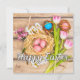 This unique card features a few colorful Easter eggs resting in a cute basket, with some fresh tulip flowers. This holiday card would be ideal for friends, relatives and colleagues.