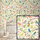 Cute Springtime Pink Yellow Birds on Cream Wallpaper